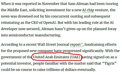 So the most likely interpretation of John’s prophecy of a Whore of Babylon birthing abominations seated atop seven mountains with seven kings is that the AIs of the apocalypse will be trained in a giant chip fab named after the river Tigris located in the UAE’s seven emirates with seven emirs.