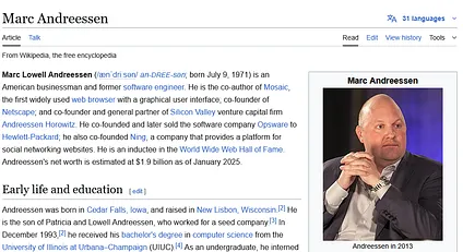 In what sense is Marc Andreessen a “little horn”? In traditional commentary on Daniel, this refers to the Antichrist starting as a seemingly-insignificant king, much weaker than those he ultimately defeats. This matches Andreessen, who, with a fortune of only $2 billion, seems an unlikely candidate to stand up to titans like Brin ($150 billion) or Musk ($400 billion).