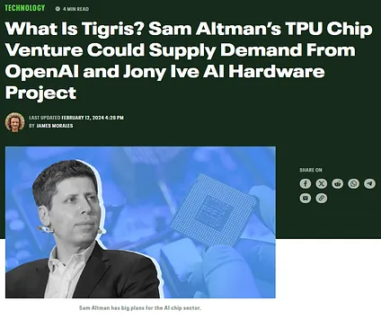 Last year, Sam Altman announced plans for a giant $7 trillion chip fab in the Middle East. It was to be named “Tigris”, after the river that ran by the city of Babylon. Although we haven’t heard much about it lately, John predicts that OpenAI’s increasing cash reserves and hunger for chips will lead them to revive the plan.