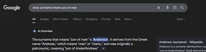 Google says that the most common name meaning “son of man” is “Anderson”, from Greek “Andreas” + son. And Silicon Valley’s most powerful venture capitalist is named Marc Andreessen.
